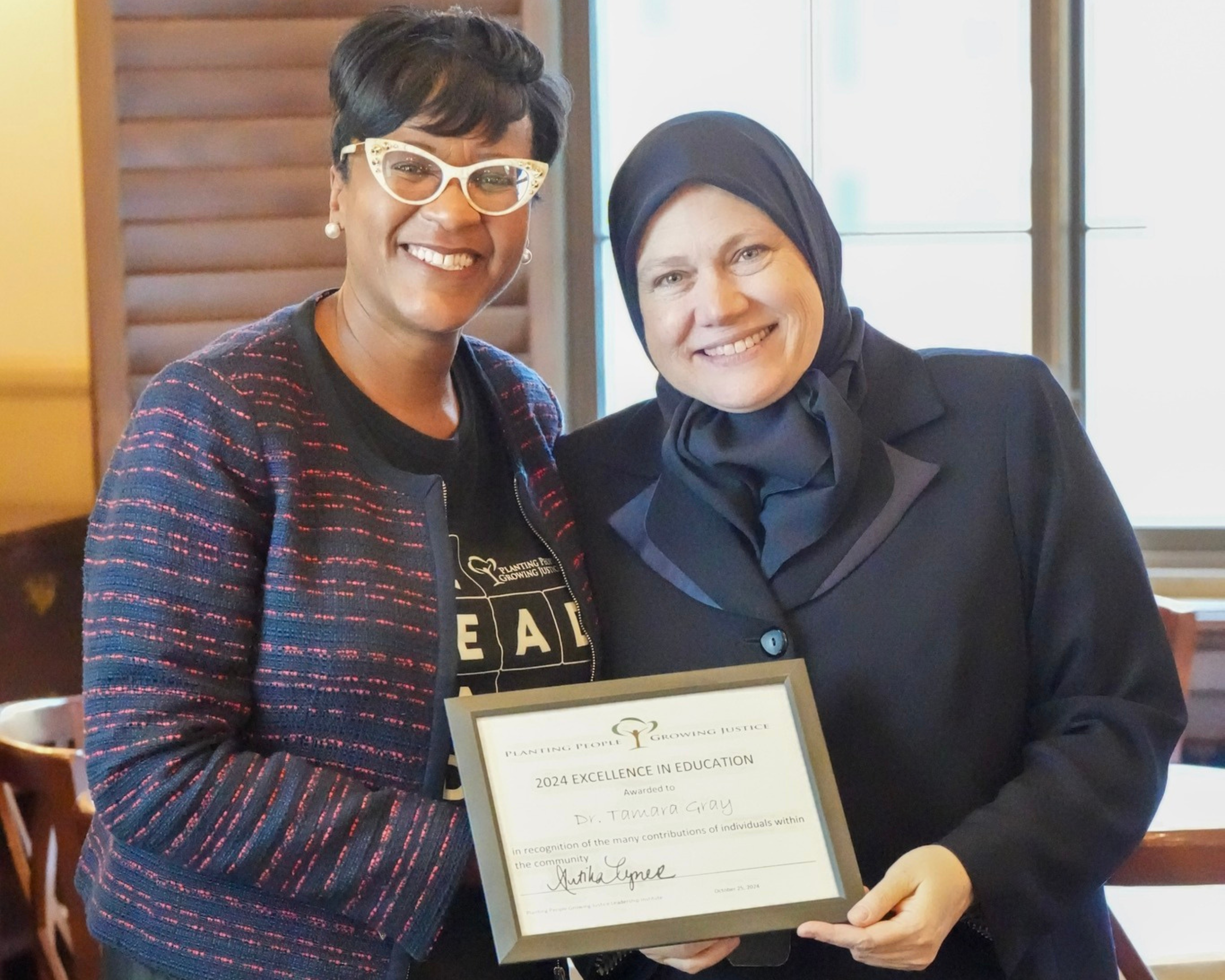 We are proud to celebrate Anse Dr. Tamara Gray for receiving the Excellence in Education award from the Planting People Growing Justice Leadership Institute. This esteemed recognition highlights her dedication to advancing education, fostering community development, and inspiring transformative change.